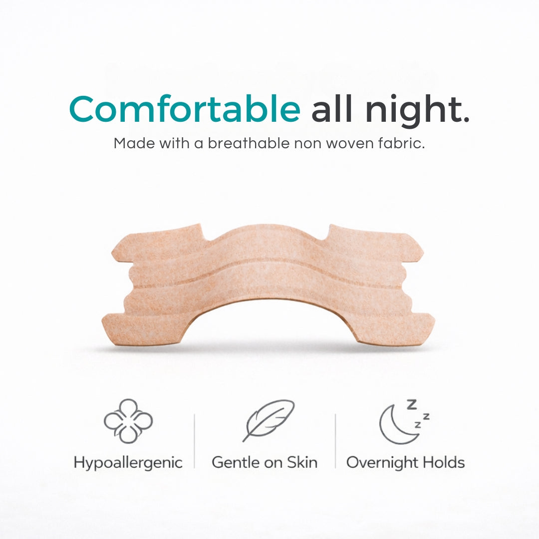 Soft fabric nasal strips that gently open the nose for healthier breathing while you sleep.