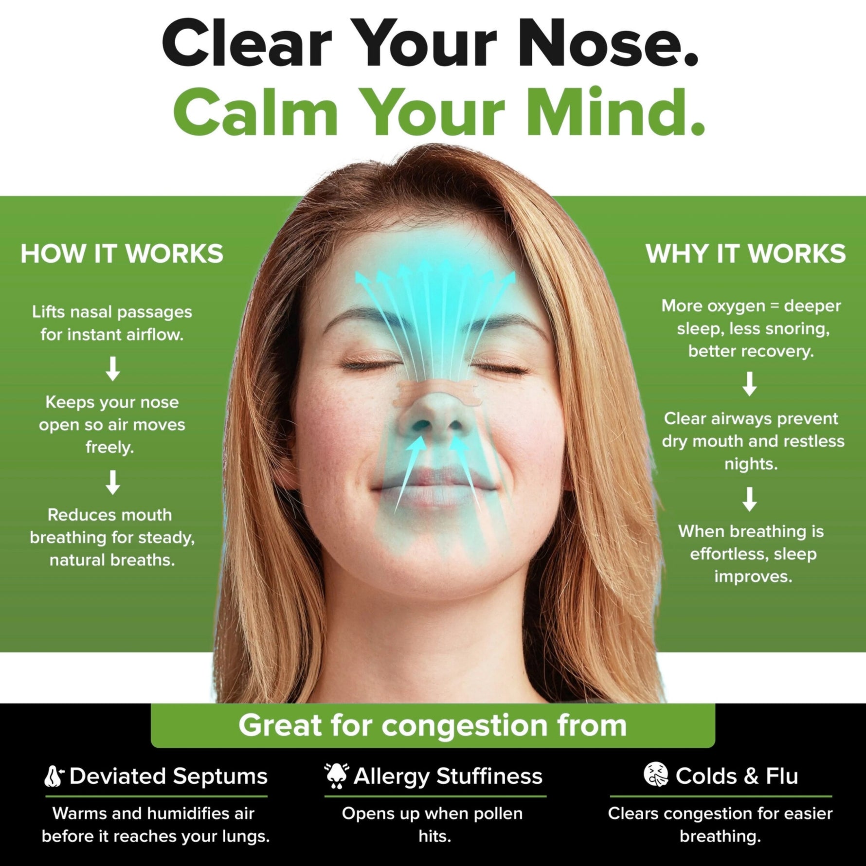 Helped me fall asleep easier and wake up more refreshed due to smooth breathing. However, if nose is genuinely blocked even a bit, the effect is limited.
